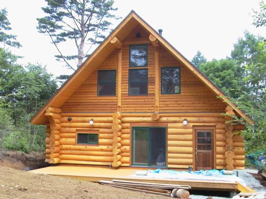 外観 カナディアンログハウスのベーシックスタイルレッドシーダーのログ材と妻壁のシーダーサイディングがマッチしています。南面に富士山が見え、大きなデッキで、日向ぼっこしながら一日過ごすことができます。光をいっぱい取り入れた明るい家がオーナーの夢でした。 |