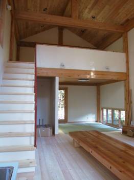 ロフトスペースは、ベッドルーム。空間を損なうことなく、スペースを有効に使っています。 |
