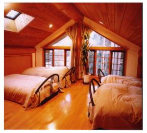 ベッドルームは、自然素材の床・天井。ここでも家族は一緒です |