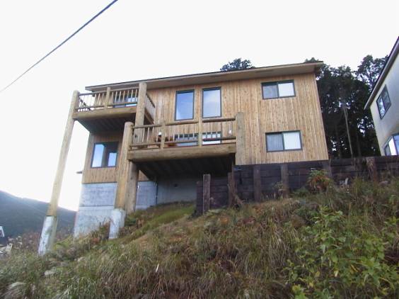 外観とアプローチ 横浜に住まいがあるご夫妻のリタイアメントハウス。見晴らしのいいデッキから富士山も見ることが出来ます。浴室からの眺めは、特に素晴らしく、浴槽につかりながら、景色を満喫できます。将来的には、ここで暮らしてゆくのが、夢だとか |