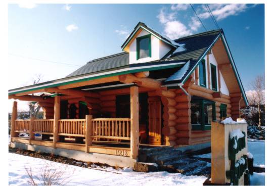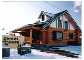 外観とデッキ レストランのデッキにあるカウンターテーブルからは、春から秋にかけてガーデンフラワーが楽しめる。屋根部分と窓は、ブリティッシュグリーンに統一され、すっきりしたデザインは、白い雪景色ともよくマッチしている。食事は最高においしい北海道・恵庭のレストラン |